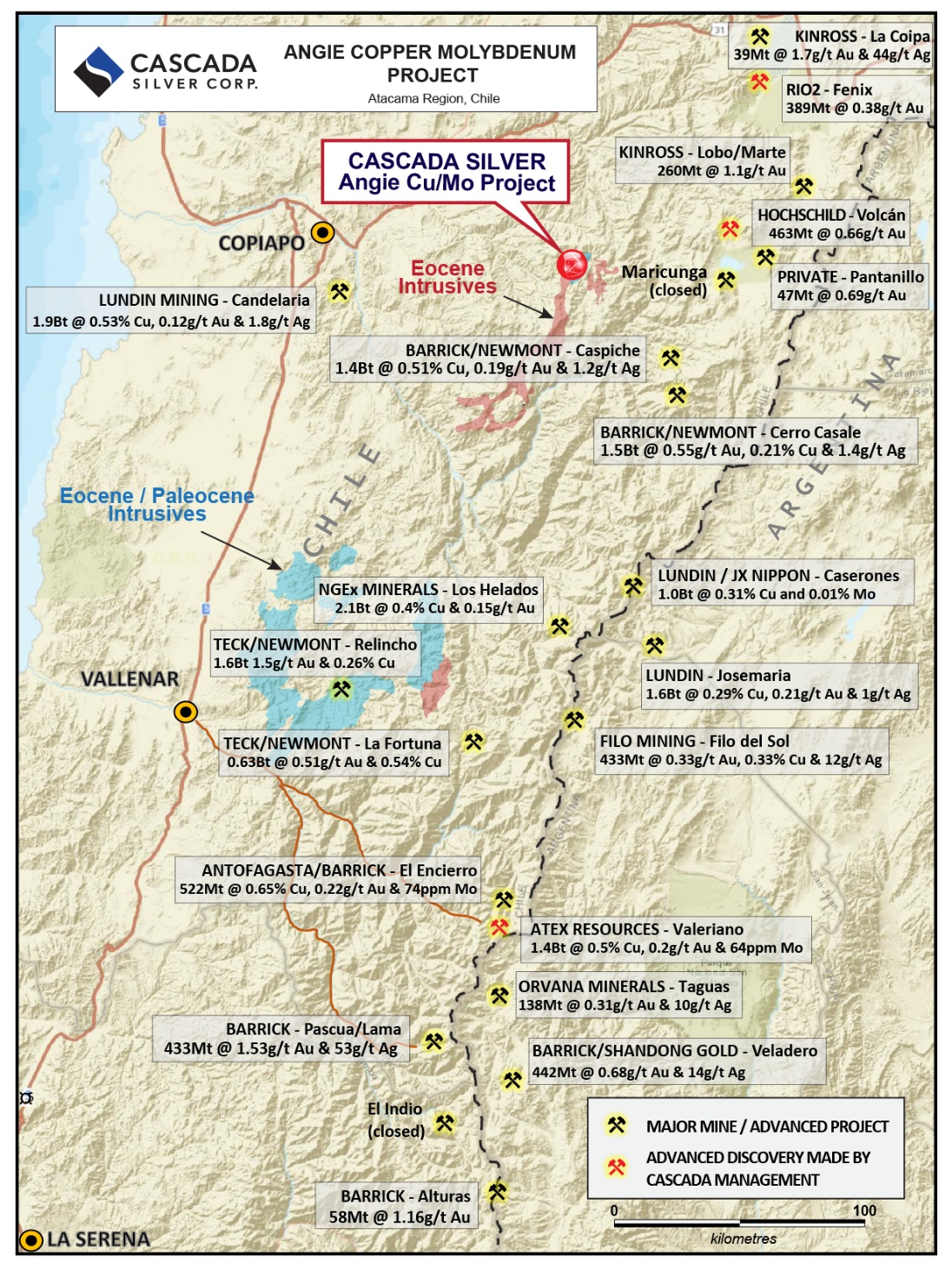 ATERRA is earning a 100% interest in the 2,000-hectare Angie Copper Molybdenum Project, located in Region III, Chile, approximately 85 kilometres east of the City of Copiapo. The Angie Project is situated at lower altitudes (2,800 to 3,200 metres) with good road access.
